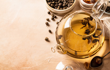 「緑茶」は、葉を発酵させないため、摘みたての葉の清々しい香りが生きています。お茶の故郷の中国でも緑茶が主流。味を重視する日本茶に対し、主に釜でいる製法を用いて青いフレッシュな香りを引き出しています。緑茶は鮮度が命です。中国には春・夏・秋と年3回茶摘みがありますが、その中でも春摘みの緑茶はとりわけ香り高くビタミンC、カフェインもたっぷり、朝の目覚めにうってつけです。できるだけ新しいものを買い、キャニスター(缶)に入れて冷暗所に保存、1年以内に飲み切りましょう。